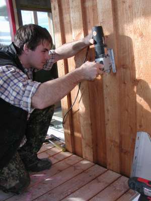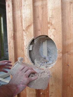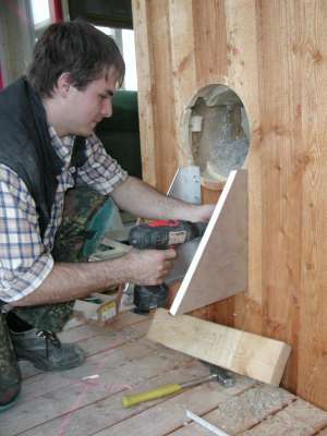 Hier die Verschraubung der Wandblende, das selbe wie der Regenkragen. |