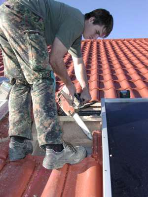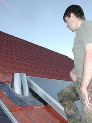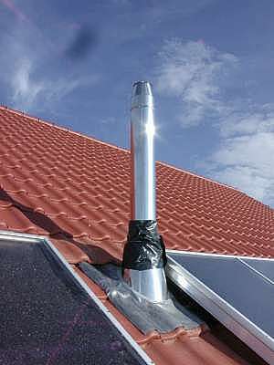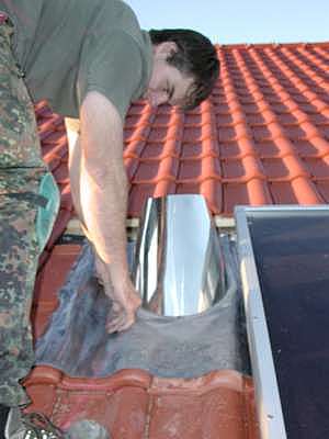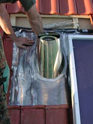 ... Dachdurchführung einpassen und den Bleikragen an den andern Pfannen angleichen. | |